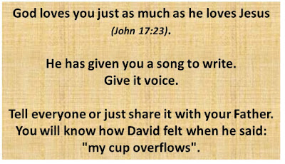 the author’s genuine emotions flow out of the words. If you read my last post on the 23rd Psalm, you can feel David’s struggle in the lyrics of that beautiful song. The words are inspired by the spirit but spoken from the author’s heart.