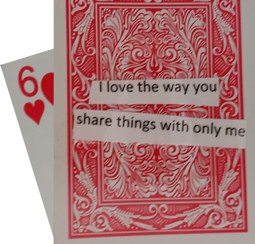 My workout this past weekend required completing 30 sets of various exercises. To keep track of my sets, I used a deck of cards. I counted out 30 cards and flipped one over as I completed each set. It’s a special deck of cards that Kim made for me. Each card has a reason she loves me written on the back. With each set, I read the message and was strengthened. I am loved. God helped me to receive that. It was one of my favorite workouts.