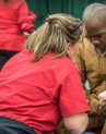Carra Day Carra joined our team during a season of her own crisis. Regardless of how difficult things were for her, she faithfully gave her best. Thank you, Carra, for showing me that seemingly overwhelming needs will be met by a loving Father and that empty hands always have something to give. (Picture of Carra praying over a homeless man at Operation Care) Hank Cates Hank joined our team later than many of the core team but instantly became a key ingredient. On days that were too hot, during tasks that were unfathomably difficult, when we needed it most, Hank’s ready smile and genuine laugh charged the atmosphere. Thank you, Hank, for reminding me that serving is a joy, and friends are meant to be enjoyed. Thank you for being my friend. (Picture as Hank saw the gutters he was asked to hang on a 100° day) Mary Jo Johnson Though she be but little, she is fierce. Nobody works harder than Mary Jo. Across the years, she has always given her very best. Whenever I was ready to give up and cut corners, she encouraged me to find a way and summoned the strength for both of us. Thank you, Mary Jo, for pushing us all to excellence in the details. We wouldn’t have been the same without you.